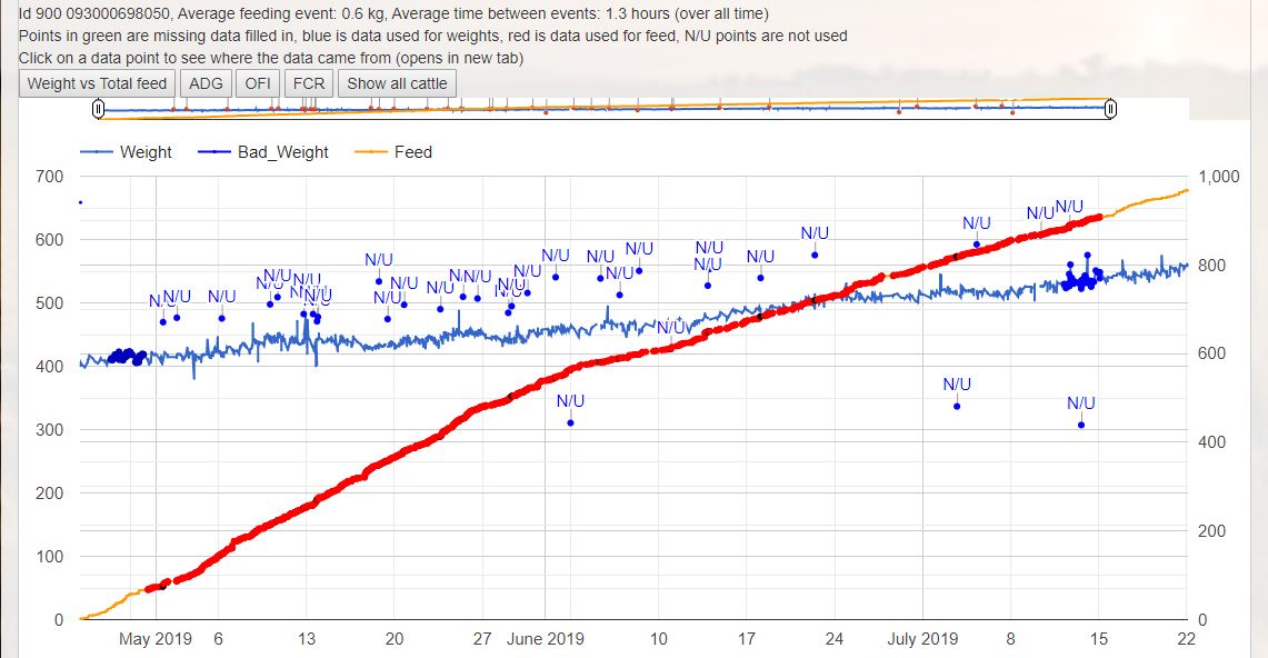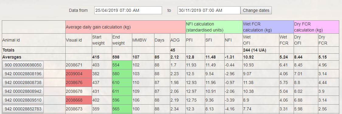 Estimated feed consumption and actual feed consumption to calculate net feed intake (NFI)